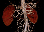 Die CT-Angiographie (auch CTA) erlaubt die kontrastmittelverstärkte Darstellung von Gefäßen