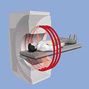 Ein CT-Scanner besteht aus einem kurzen Ringtunnel (Gantry), in dem ein System aus